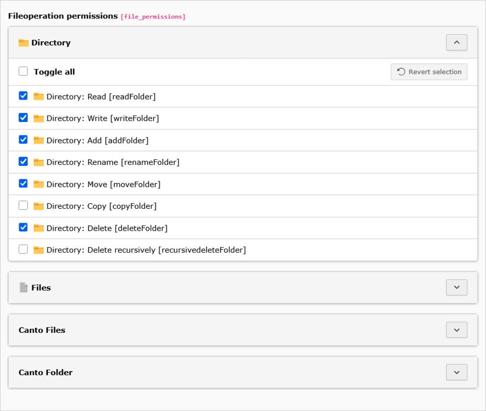 - Dies ermöglicht eine gezielte Steuerung des Zugriffs auf einzelne Verzeichnisse und Dateien innerhalb des Canto-Speichers.